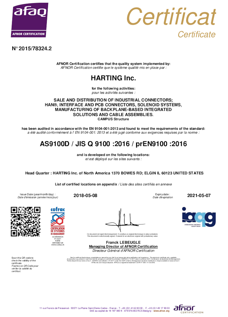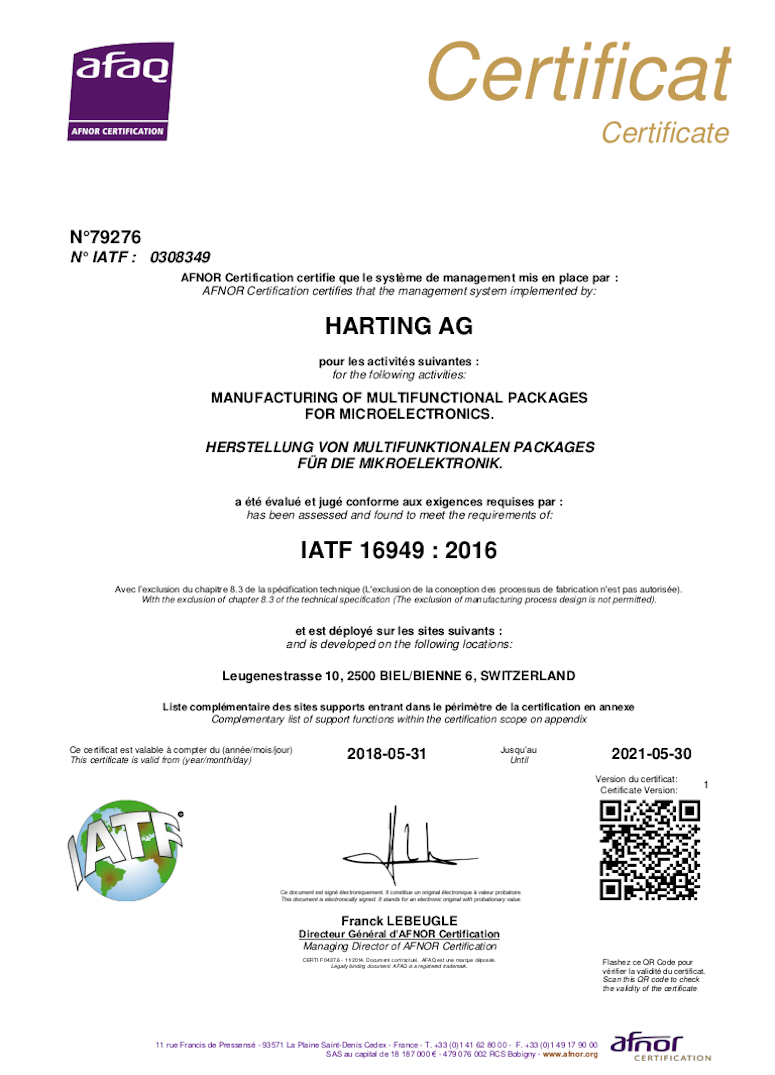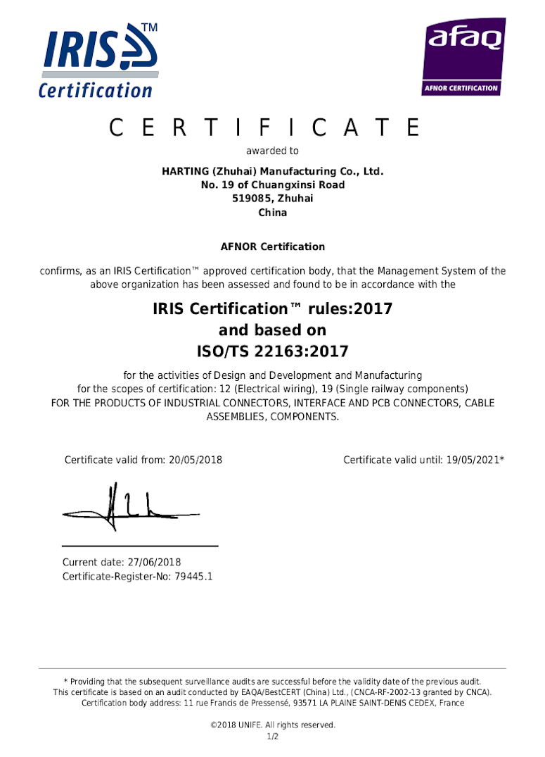 Сегодня во всем мире в фирме ХАРТИНГ работает более 3200 человек, занятых в 40 дочерних компаниях и 27 представительствах. Продукция фирмы ХАРТИНГ проектируется и производится, используя новейшее автоматизированное оборудование, от систем CAD в отделе исследований и до станков-роботов сборочных линий. Организация контроля качества базируются на стандарте DIN EN ISO 9001. Компания HARTING устанавливает стандарты во многих областях применения и удовлетворяет индивидуальные требования клиентов, гибко реагируя на каждое конкретное решение.