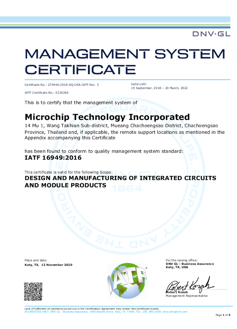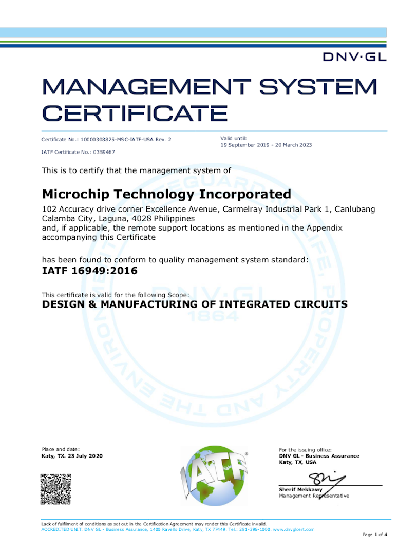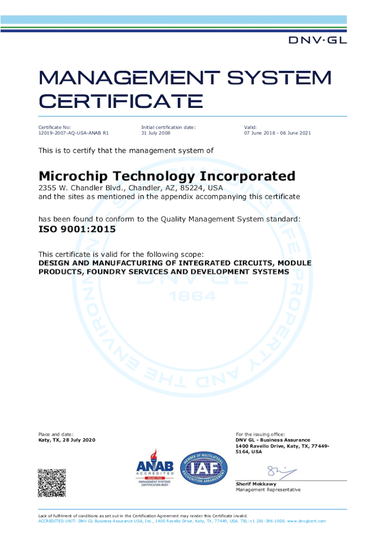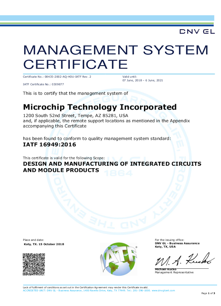 Продукция Microchip обладает высоким уровнем взаимозаменяемости и расширяемости — клиенты могут легко использовать новые приборы, не изменяя исходные коды. Система качества Microchip основана на элементах ISO/TS-16949 — системы качества, сертифицированной крупнейшими производителями автомобилей.